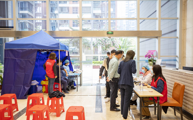 12月31日,公司党群工作部、团委联合香蜜湖街道东海社区启动农科商务办公楼疫苗集中接种点,深入开展“我为群众办实事”实践活动,组织开展新冠疫苗接种志愿服务,方便办公楼内各企业职工和附近群众就近接种第三针新冠疫苗。