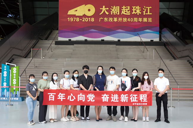 大潮起珠江—广东改革开放四十周年展览馆全面展示了广东改革开放40年的峥嵘岁月和壮阔历程,以及经济社会发展的丰硕成果。随着参观的进行,大家目睹了深圳从土阶茅屋、环堵萧然到现在的琼宇林立、华灯璀璨,让团员青年们由衷地感慨深圳的沧海桑田,对脚下这片干事创业的热土有了更加深刻全面的认识。