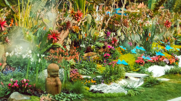 除了参与承办花卉产业论坛,以“花森林·深呼吸”为主题的铁汉生态展区也在此次花展上美丽绽放,展区利用景石、枯木、砂石、水体等自然元素,配合空气凤梨独特的色彩进行艺术造型,精心布置,采用捆绑或悬挂方式模拟空气凤梨原生境的附生景观,以展示其特殊的生活习性;还将富有诗意的佛像巧妙融入到景点内,以增加观赏的趣味。通过把人与自然、生态、健康链接起来,唤起人们关注并参与到生态环境建设中。