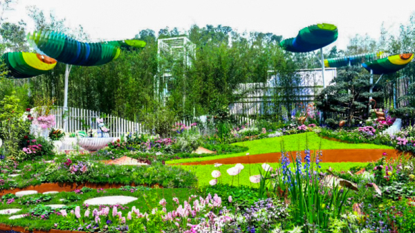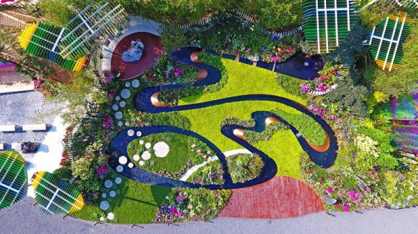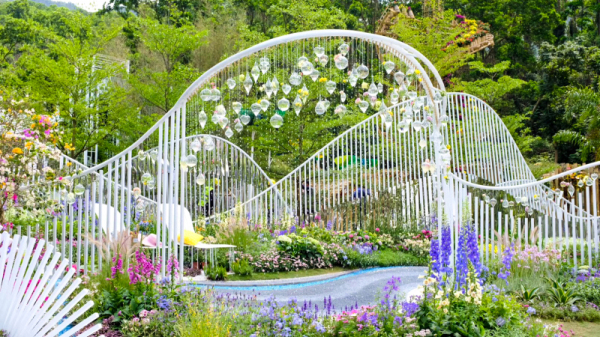 在各区精品花园展区,由铁汉生态设计并施工的深圳盐田园和宝安园,因主题特色鲜明、空间布局和谐和美轮美奂的花境格外抢眼,吸引了广大游客驻足。据铁汉生态设计人员介绍,宝安园通过挖掘宝安的发展历史脉络,以“追根溯源,花绘宝安”为主题,是“得宝而安”历史文化的记载,整个园将原为斜坡的不利地形转为优势,通过搭架,以大面积镜面为背景,“以山为影,以水为魂”来布局,营造了层层叠水、涌泉、雾影、海底世界等水系景观,园区还营造了带有科学原理的“万花筒”,增加了与市民的互动性,增加了体验感。盐田园以盐田“山海花城”的独特地域风貌为总体思路,提出“山海花·悠时光”的设计主题,“以山为骨、以海为魂、以花为笔、城在心中”,园内以白蓝紫的主题色调搭配布置花境,海石竹、满天星、蝶花荚蒾为浪之白,飞燕草、蓝雪花、薰衣草为海之蓝,充分体现了盐田区以“生态”和“旅游”建区的主旨理念,突出“小而精,秀而美”的建设思路,呈现出深圳这座滨海城市浪漫唯美的独特气质。