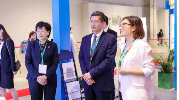 ▲广东省生态环境厅厅长鲁修禄、广东省环境保护产业协会会长区岳州莅临铁汉生态展位指导