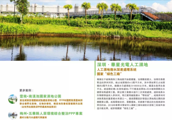 为期三天的展会中,铁汉生态展位接待了数百批来自各个国家和地区的政府代表、商界代表和环保届人士代表。其中,由铁汉生态倾力打造的深圳华星光电人工湿地案例备受大会专业观众关注。深圳华星光电位于被称为珠三角地区污染最严重、治理难度最大、治理任务最紧迫的茅洲河旁,总占地面积约4.5万平方米,其中湿地单元占地面积约3万平方米,总废水日处理能力18000立方米。铁汉生态通过建造稳定塘+生态快滤池+下行垂直流湿地+沉水植物景观出水调节池等处理工艺,对企业工业废水进行二次深度处理,达到地表水Ⅳ类标准后排入茅洲河,现已实现厂区废水“零排放”,成为茅洲河消除黑臭的重要补水来源之一。2018年华星光电被列入国家工业和信息化部第二批绿色制造示范名单,被评为国家“绿色工厂”。