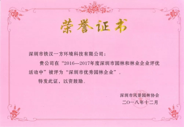 大会宣布了深圳市园林和林业企业评优活动结果及2018年度优秀风景园林规划设计项目评选结果。铁汉生态被评为“深圳市特别优秀园林企业”,并有6个项目同获规划设计奖。分子公司铁汉山艺被评为“深圳市十强优秀园林企业”,铁汉一方被评为“深圳市优秀园林企业”。
