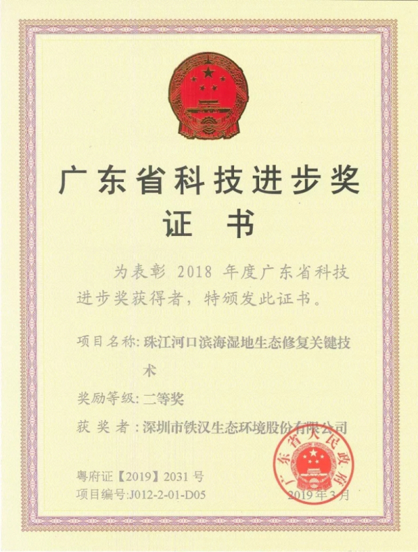 近日,铁汉生态与香港城市大学深圳研究院、广东内伶仃福田国家级自然保护区管理局、香港城市大学、广东中绿园林集团有限公司、中国市政工程西北设计研究院有限公司、深圳市绿九洲园林绿化有限公司、中国城市建设研究院有限公司的共同成果“珠江河口滨海湿地生态修复关键技术”荣获广东省科技进步奖二等奖。