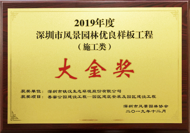 2019年度深圳市风景园林优良样板工程(施工类)大金奖