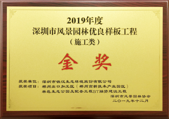 2019年度深圳市风景园林优良样板工程(施工类)金奖