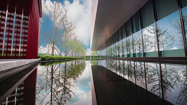 中庭空间主要栽植乌桕、地被、草皮,与外界规则式种植形成鲜明对比,从外到内的行动路线,给人以全新的景观体验。如果说外侧是人工去雕琢的,那中庭就让人仿佛置身于大自然的怀抱中,水边嬉戏,池边歌唱,打造出一片和谐的景观场景。