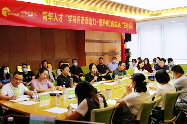 谢斐以《攻坚克难开新局•青春奋斗永向前》为题,结合党的组织建设、干部选拔等党史学习内容,围绕中节能铁汉干部选拔、队伍建设、人才工作等重点,开展党史教育,勉励公司青年人才强化使命感与责任担当,增强发展信心、树立科学目标,在今后的工作中齐心协力、攻克难关。