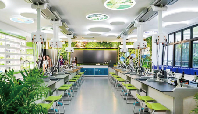 中节能铁汉承办了深圳明德实验学校8个跨学科融合的科技创新实验室之一——生物基因实验室。公司科技研发部建设的生态景观绿墙、无土栽培蔬菜架及生态鱼缸通过利用生态学原理,模拟出一个丰富、稳定的小生态系统,让学生在学习的过程中产生自然的情感链接,为静态的空间增添了勃勃生机。
