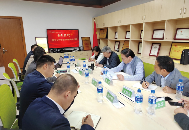 洪继元认真听取了西南分公司的有关工作汇报,详细了解了西南分公司党的建设、经营管理和业务发展等情况,充分肯定了西南分公司在各项工作中取得的成绩,对年度改革发展党建等各项重点工作作出要求。