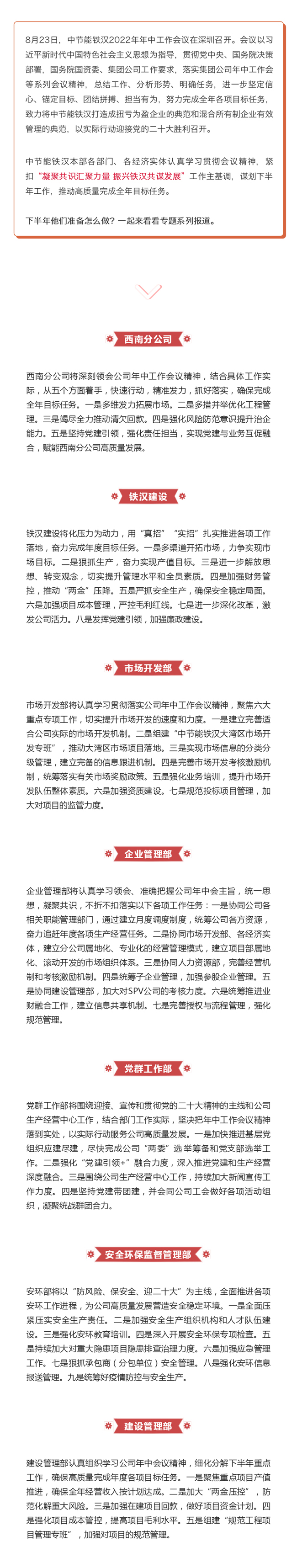 中节能铁汉各单位学习贯彻公司年中工作会议精神(二)
