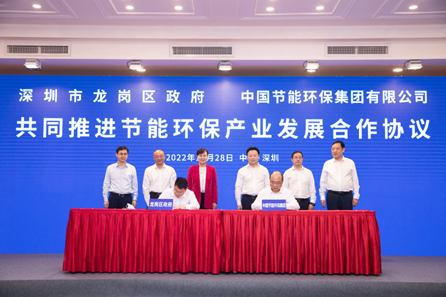 签约仪式上,中国节能还与深圳市龙岗区政府签署了共同推进节能环保产业发展合作协议,双方将重点围绕“双碳”领域科技创新、铁汉生态广场建设、绿色低碳园区改造、绿色低碳服务等节能环保领域开展合作,共同推动龙岗区节能环保产业集群发展。