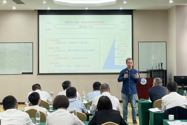 中山大学管理学院教授、博士生导师张书军作题为《企业战略与发展变革》专题讲座,围绕企业战略制定、战略适应环境、企业如何持续获得竞争优势、战略规划及竞争策略等方面进行深入浅出讲解,并结合国内知名企业实际案例剖析企业发展中的战略抉择与坚守之道。