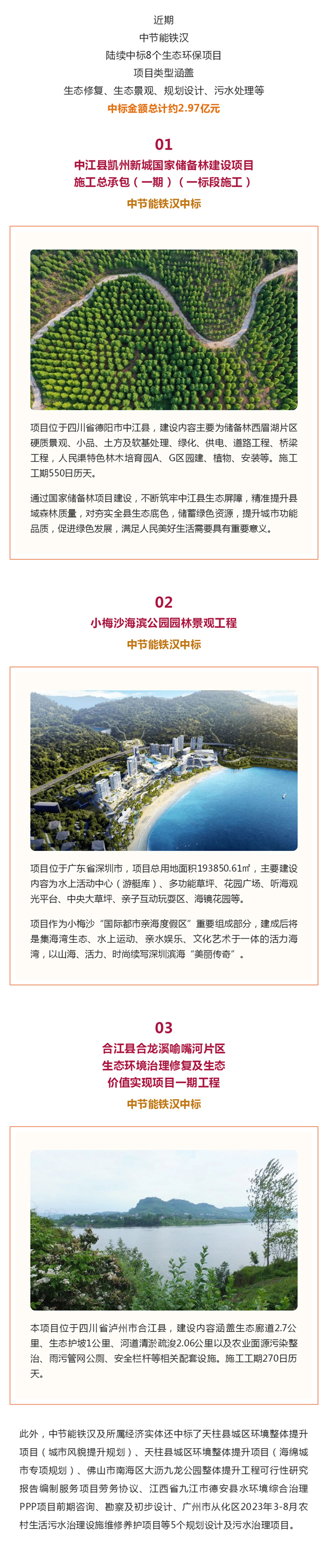 喜报 | 中节能铁汉近期中标系列项目,中标额近3亿元