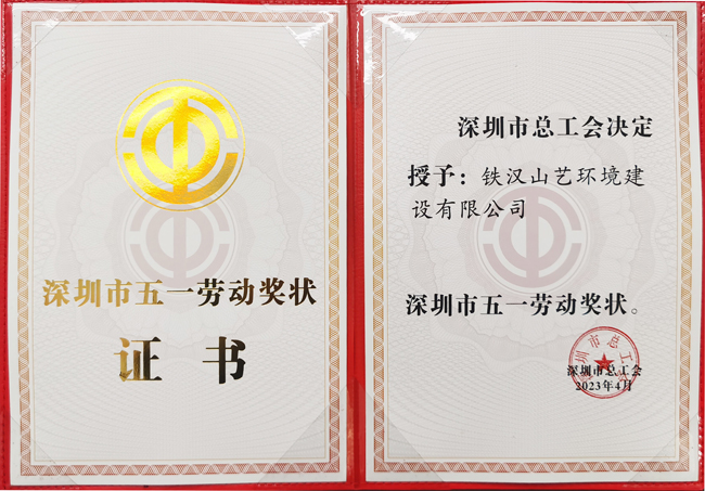喜报 | 中节能铁汉所属铁汉山艺荣获深圳市五一劳动奖状