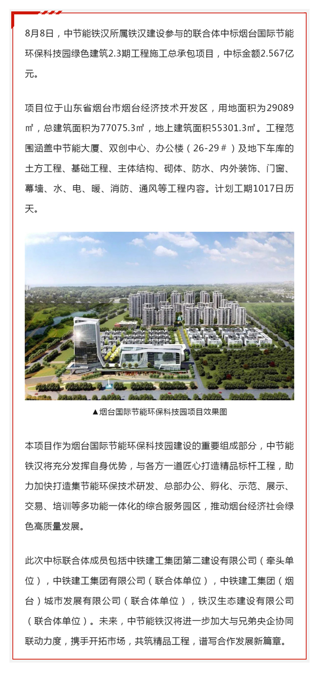 喜报 | 铁汉建设参与的联合体中标烟台国际节能环保科技园绿色建筑2.3期工程施工总承包项目