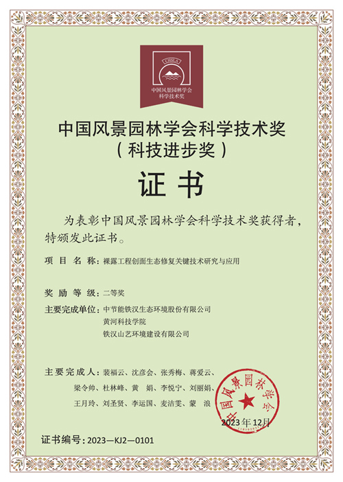 面对裸露工程创面,地表生态如何修复,中节能铁汉的创新做法是——构建可持续的拟自然植被!日前,中国风景园林学会为“2023年度中国风景园林学会科学技术奖”获奖单位颁发了荣誉证书,由中节能铁汉申报的《裸露工程创面生态修复关键技术研究与应用》获科技进步奖二等奖,为该类场景生态修复提供创新解决方案。该项目去年底还揽获了2023年度广东省勘察设计行业协会科学技术奖三等奖。