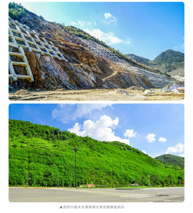 《裸露工程创面生态修复关键技术研究与应用》项目采用团粒喷播技术、连续纤维丝补强土植生技术及植生混凝土喷播技术,施工操作简单、成效快、成本低、效果好,能处理不同坡度的边坡覆绿问题,从而实现生态防护功能以及植被的稳定性和可持续性,已在贵州凯里、四川成都等地的多个生态修复项目上成功应用。该项目作为中节能铁汉“山水林田湖草沙一体化保护和系统治理方案”的具体举措之一,将积极助力生态文明建设,力争在国土空间生态修复和城乡人居环境整治等领域起到关键作用。