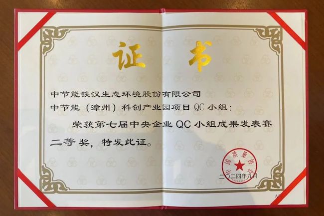 9月10日,由国务院国资委指导、中国质量协会主办的第七届中央企业QC小组成果发表赛在浙江省嘉兴市开幕,来自88家中央企业的204个QC小组、580名选手参加。9月13日,经过激烈角逐,中节能铁汉中节能(漳州)科创产业园项目QC小组基于项目实践的改进型课题成果,荣获该项赛事二等奖。
