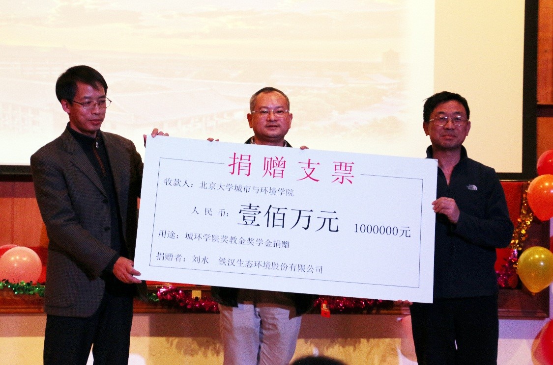 12月24日晚,北京大学城市与环境学院2015“倾城之夜”元旦晚会举行,“2014铁汉城环奖教金、奖学金” 捐赠仪式也同步进行。北京大学城市与环境学院院长陶澍院士、党委书记刘耕年教授、铁汉生态刘水董事长与百余名北大城环师生共度了一个愉快的夜晚。