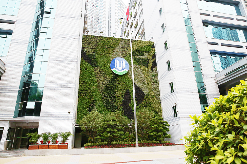深圳市城管局办公楼立体绿化项目总面积192㎡,运用铁汉生态自主研发的发明专利技术——移动式模块化垂直绿化技术。这是由移动式模块、轻型有机海绵基质、人机交换智能触控滴灌系统和抗逆植物组成的稳定系统,不仅方便安装,易于造型,更实现了绿化墙上植物的智能补水与供肥等,其科学配置能有效延缓模块植物的老化及基质沉降速率。