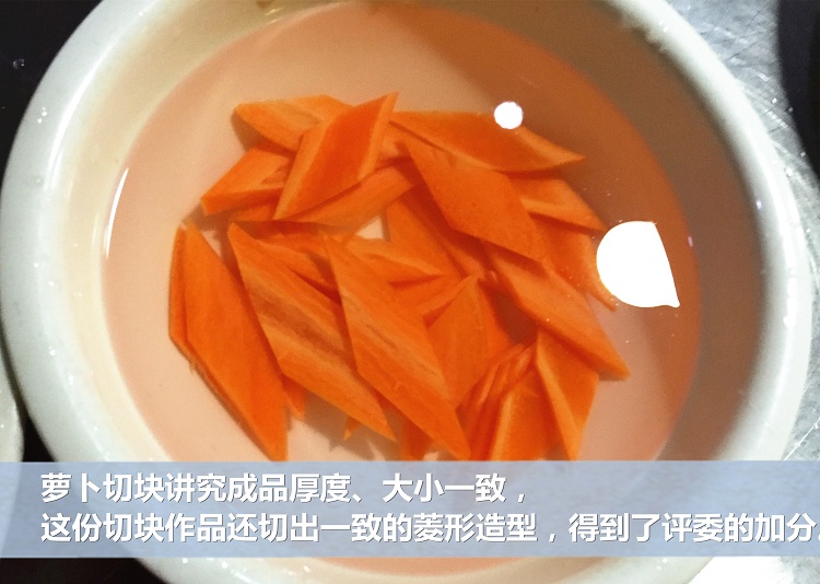 刀工比拼主要考验选手的厨艺刀法基本功,参赛选手需要在10分钟内完成300克土豆的切丝和300克萝卜切片的操作。