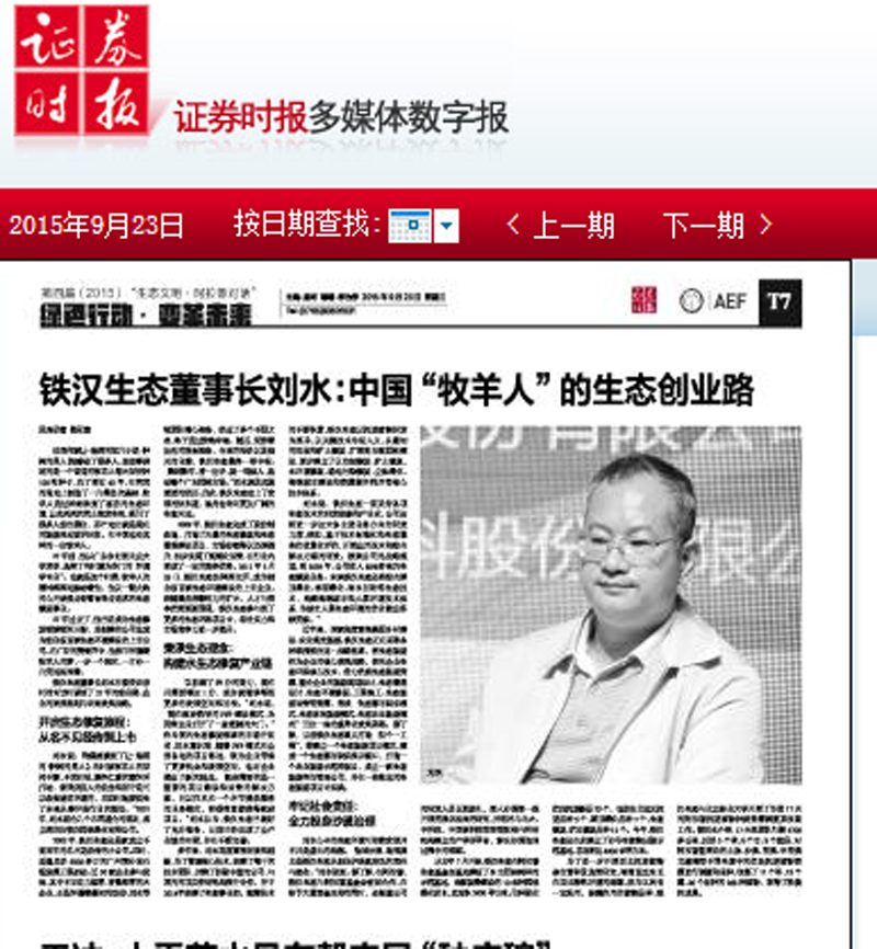 证券时报专访:《铁汉生态董事长刘水:中国“牧羊人”的生态创业路》