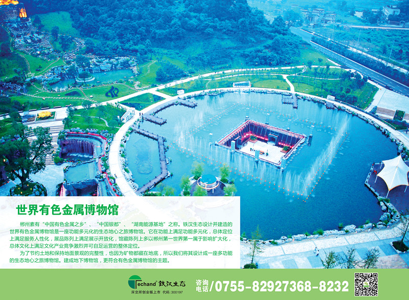 郴州素有“中国有色金属之乡”、“中国银都”、“湖南能源基地”之称。铁汉生态设计并建造的世界有色金属博物馆是一座功能多元化的生态地心之旅博物馆。功能多元化、服务人性化、展示开放化是其主要特点。