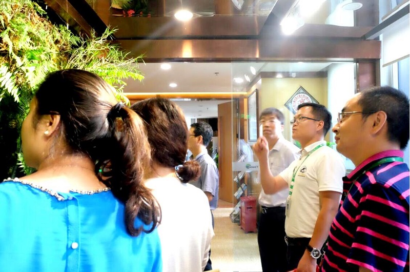 会议结束后,深业集团考察团参观了铁汉生态总部办公楼立体绿化项目,总经理温庚金对项目的设计理念、工艺特点、智能系统应用进行现场讲解。