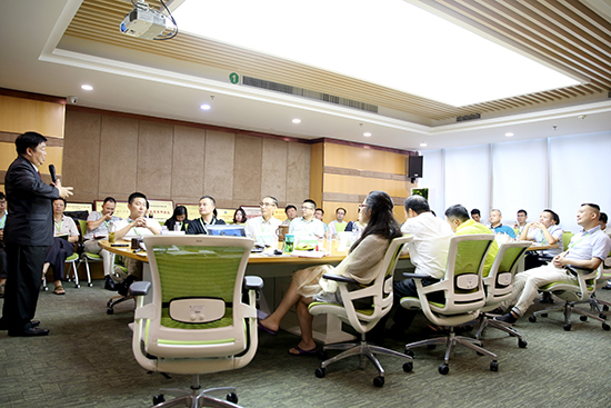8月2日下午,深圳市经历了最强台风“妮妲”的袭击。外面狂风肆虐、雷雨交加,而在铁汉生态深圳总部,同样也经历了一场“风暴”的袭击——台湾品牌农业推广协会理事长张玉成博士应邀前来,与铁汉生态董事长刘水、总裁陈阳春、常务副总裁欧阳雄等中高层管理人员共同探讨生态休闲农业发展。