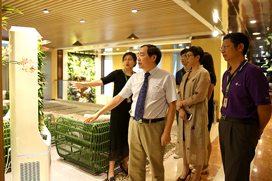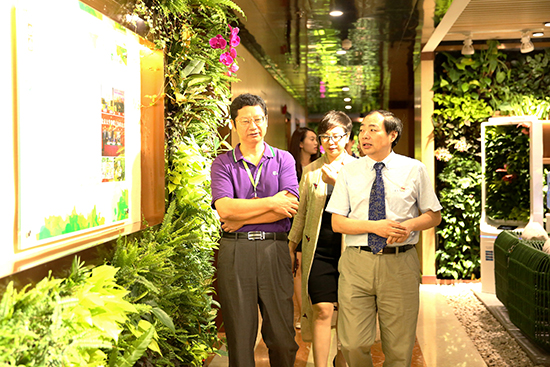 楚天秘书长一行在铁汉生态品牌文化办公室主任兼总工程师刘德荣的陪同下参观了铁汉生态总部,对铁汉生态办公环境的立体绿化设计称赞有加,并深入了解了相关立体绿化及am:10产品对环境净化的设计原理及生态价值。