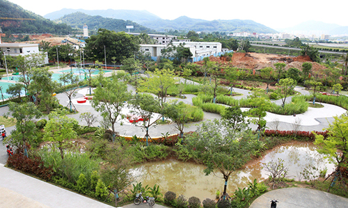 三亚第十小学的建设意义不仅在于让孩子们近距离感受充满神秘的大自然,接受大自然的教育,铁汉生态还融入了“海绵城市”的建设理念,让孩子们从小培养并树立生态环保意识。