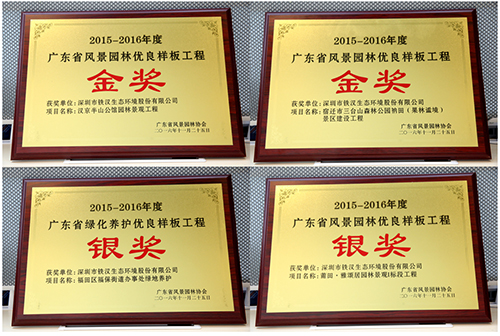 会议对2016年度省优秀园林企业及优秀园林工程项目进行颁奖表彰。铁汉生态再次获评“2016年度广东省园林绿化行业诚信评价AAAAA等级企业”。同时,铁汉生态承建项目荣获“2015-2016年度广东省风景园林优良样板工程金奖”等多项大奖。