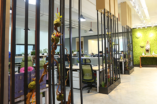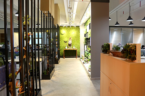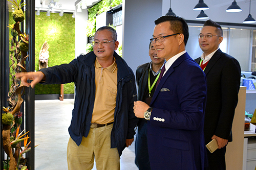 而作为立体绿化行业的创新者和先行者,铁汉一方自家人的办公室里,各式立体绿化创新技术的实践应用更是应接不暇。铁汉一方总经理温庚金带领嘉宾一行参观了新办公区,悉心讲解了每个造型设计的理念,精美巧妙的布置创意也引得闪光灯和惊叹声不断。