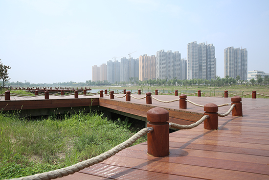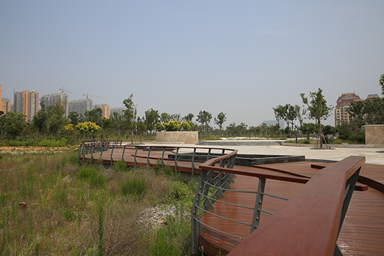 如今,漫步在景观区内,看蝶舞翩跹,花、草、树相映成趣;看孩童追逐嬉戏,快乐无边;看周边人气逐渐积聚,建设初衷达成;看湖水碧波荡漾,享清风四面吹拂,好不惬意!