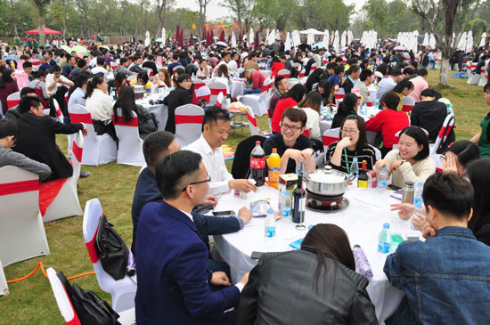 前一晚还在春雨绵绵,今天却是“火”力十足的艳阳天,老天爷似乎也在预示着铁汉生态2017年的"不简单“!原生态草地派对配上热气腾腾的火锅盛宴,在铁汉人的热情迸发下,究竟会迸发出怎样的化学反应呢?