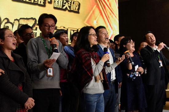 最后云南区域运营中心全体同事为年会献上了一首《铁汉之歌》。铁汉顶天立地,铁汉一路高歌,铁汉铁汉腾飞铿锵磅礴,铁汉的明天万里春色,铁汉的明天万里春色,万里春色………