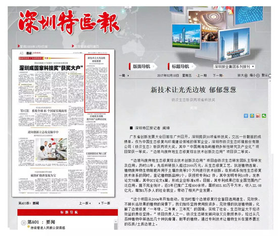 而作为国家级高新技术企业,铁汉生态已连续三年荣登“深圳企业100强”名单。铁汉生态在生态修复领域的创新研发实力,注重生态效益、社会效益与经济效益相结合的生态理念也受到《深圳特区报》、《深圳商报》、深圳广电集团都市频道、深圳新闻网、《南方都市报》等多家主流媒体的重点报道。