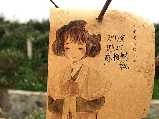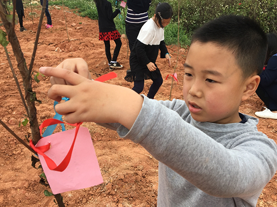 种上树后,孩子们还将亲手制作的认养牌挂在小树上,决定长时间照料小树,和小树一同成长。