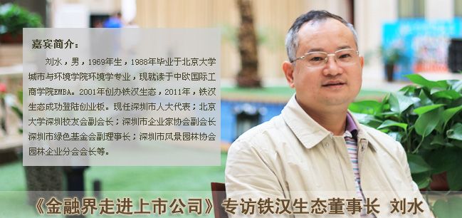 - 央视财经记者现场采访了铁汉生态副总裁、设计院院长陈伟元,目前访谈视频已在央视《经济信息联播》栏目中播出。