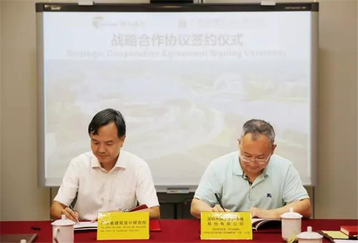6月13日,深圳市铁汉生态环境股份有限公司(以下简称铁汉生态)与广东省建筑设计研究院在广州签署战略合作协议。广东省建筑设计研究院党委书记曾宪川,铁汉生态董事长刘水等领导出席了签约仪式。