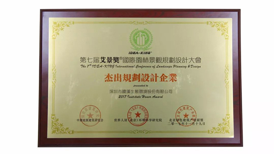艾景奖(IDEA-KING)是具有世界影响的创意设计专业展会和专业大奖,奖励对景观设计行业做出突出贡献的设计师及设计机构。2017国际园林景观规划设计大会以“城市更新·文化传承”为主题,旨在以国际园林景观规划设计大会为平台,加强我国园林景观行业与国际风景园林领域的交流,广泛推广世界不同文化背景下的景观设计理念。