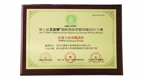 凭借在景观规划设计领域的雄厚实力,铁汉生态一举斩获4项大奖:公司荣获“杰出规划设计企业”奖;贵州省黔南州长顺县麻线河河道治理工程荣获“年度十佳景观设计·城市公共空间”奖;贵州省盘县西冲河统筹城乡发展乡村旅游综合体PPP项目荣获“年度十佳景观设计·公园与花园设计”奖;贵州省凯里市清水江生态治理建设工程荣获“年度优秀景观设计·旅游度假区规划”奖。