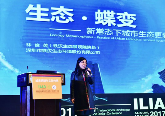 近50位国内外园林景观专家、学者及设计大师围绕“城市更新•文化传承”的主题作精彩演讲。深圳市铁汉生态环境股份有限公司规划设计总院副院长林俊英作为特邀嘉宾出席本次大会并发表主旨演讲。