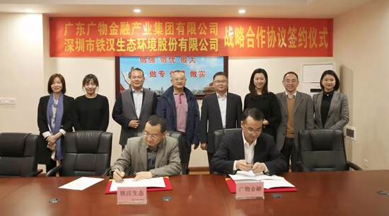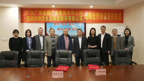 11月24日,深圳市铁汉生态环境股份有限公司与广东广物金融产业集团战略合作签约仪式在广州物资大厦举行,双方将利用各自资源优势,在融资租赁、商业保理、产业基金等方面开展全面、深度的合作。广物金融产业集团总经理卢恩健,铁汉生态董事长刘水、副总裁陈峰华以及双方相关部门负责人出席了签约仪式。