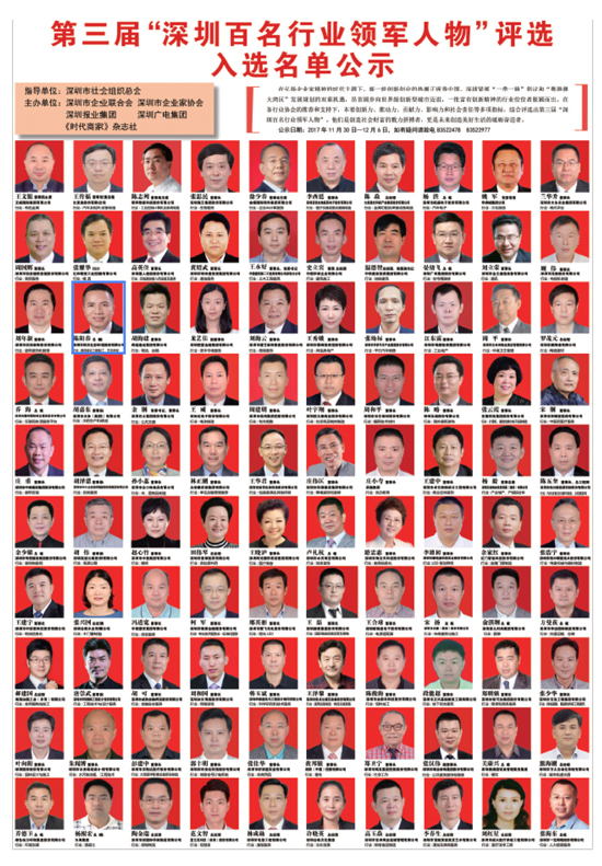 陈阳春总裁入选第三届深圳百名行业领军人物