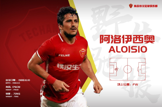 阿洛伊西奥,来自巴西,生于1988年6月19日,身高176cm,体重78kg,司职前锋,身体条件出众,赛场上的阿洛伊西奥以胆量著称,他不仅会进球,身体还非常硬朗。阿洛伊西奥还有一个外号:野牛,来源于当他在费古埃伦斯效力的时候,球迷送他的外号:Boi Bandido(在英语里,指巴西一种非常凶悍的公牛),源于他对赢球的渴望和他的奉献精神。曾先后效力于沙佩科人、费古埃伦斯、圣保罗、山东鲁能、河北华夏幸福等俱乐部。效力山东鲁能期间曾与球队一起取得了2014年足协杯冠军、2015年超级杯冠军,其本人更是凭借22粒进球获得2015年中超联赛金靴奖。阿洛伊西奥自2016年7月加盟河北华夏幸福以来,代表球队出场37次,打入20球。