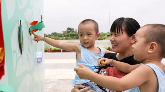 另一边,铁汉生态的“环保树”下,市民带着孩子正玩得不亦乐乎,有的把塑料瓶盖做成“果子”粘贴到“树枝”上,有的把废纸箱剪成树叶并涂上绿色,让“环保树”不断开枝散叶。