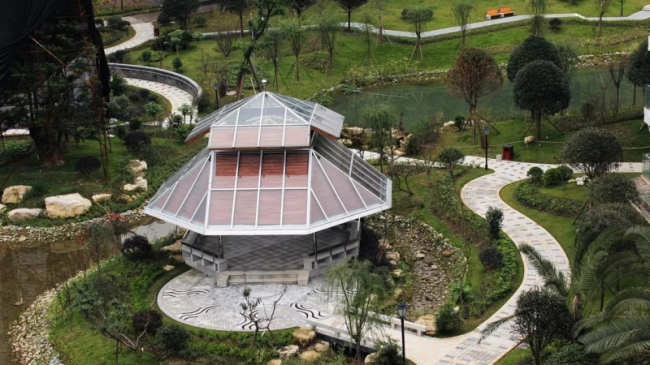 853分所1号外场测试培训中心景观绿化工程项目位于四川省都江堰市蒲阳镇,铁汉生态把都江堰的“世界水利文化的鼻祖”、“道教发祥地”与业主企业文化相结合,巧妙将水的不同形态变化与场地内使用者的不同需求结合起来,水使不同功能区串联而成。每个功能区的水都有其自身特色,水景观元素顺水天成,怡然佳境,使户外游憩与室内培训的动与静相互交融。项目结合都江堰的道家文化和水文化打造出“跃然出纸上,依旧画图中”的精品园林景观,专家们给予高度认可。