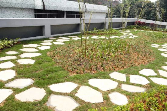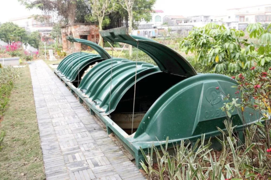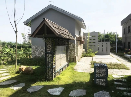 如今,走在莲洲镇的各个村落中,都有一个别样的角落尤为引人注目,这里有着绿草菁菁的草皮,有着各式各样的鲜花植物,有着可供村民休闲散步的石路,还有几处匠心设计的蚝壳景墙和木条景观,有的为单体建筑或两层建筑,有的甚至还有类似集装箱的设备房,让人乍眼一看还以为是一个小型的社区公园,但实则它们还有一个特殊的身份——污水处理站。